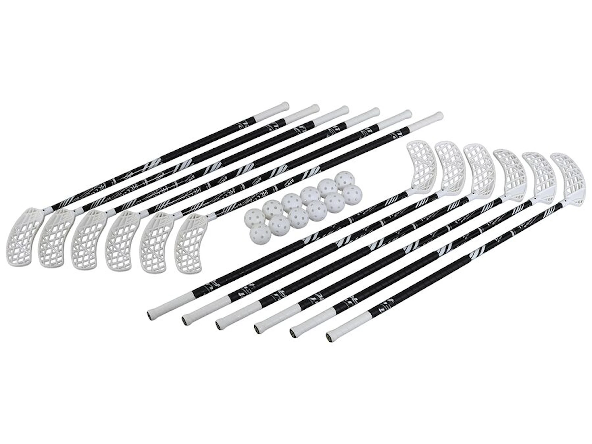 Sættet består af 9 venstrehåndsstave og 3 højrehåndsstave, hvilket gør det tilgængeligt for flest mulige elever. Derudover følger der 12 hvide standard floorballbolde med.