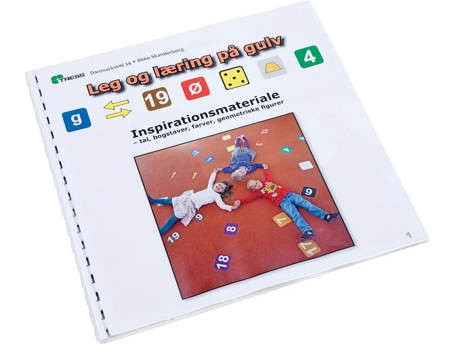 Leg og læring på gulv leveres med 32 store bogstaver, 32 små bogstaver, tal fra 1-20, terninger, geometriske figurer og pile – alt i slidstærkt selvklæbende materiale, som er nemt at montere på glatte gulve. Derudover medfølger inspirationsmateriale, som hjælper pædagoger og lærere med at skabe spændende lege og aktiviteter, der understøtter børns læring og motoriske udvikling.