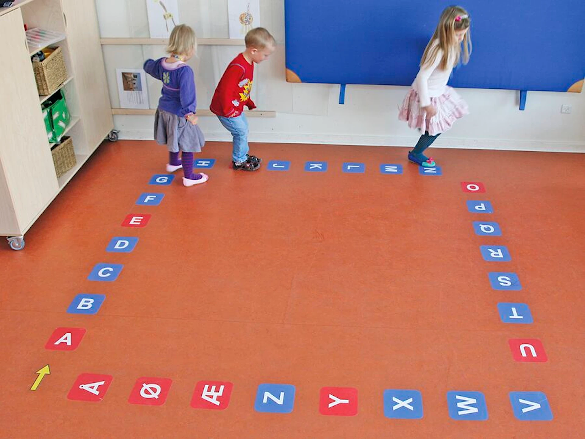 Produktet kan tilpasses jeres behov og placeres i forskellige mønstre, f.eks. som en hinkebane eller som et tastatur. Dette fleksible design gør det nemt at integrere Leg og læring på gulv i både små og store rum, hvilket skaber en engagerende atmosfære, hvor børn dagligt kan interagere med bogstaver, tal og figurer gennem fysisk aktivitet.