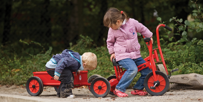 Hos TRESS finder du et stort udvalg af Winther cykelanhængere, som passer perfekt til vores mange forskellige institutionscýkler til legepladsen. En Winther cykelanhænger udvikler børnenes krydskoordination på cyklen og bidrager til legen, hvor børnene kan skiftes til at trække hinanden rundt.