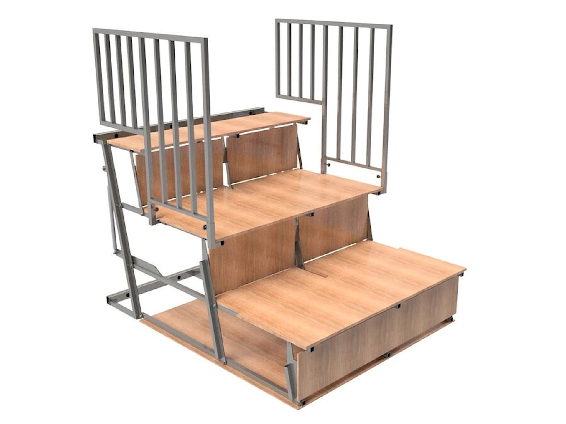Den foldbare tribune er perfekt til sportsbegivenheder, skoleforestillinger og andre indendørs aktiviteter, hvor fleksible siddepladser er nødvendige. Med en belastningskapacitet i henhold til EN 1991-1-1 kat. C5 - 5.0 kN/m², kan du være sikker på, at vores tribuner tilbyder en pålidelig og alsidig løsning, der skaber en komfortabel oplevelse for alle tilskuere.