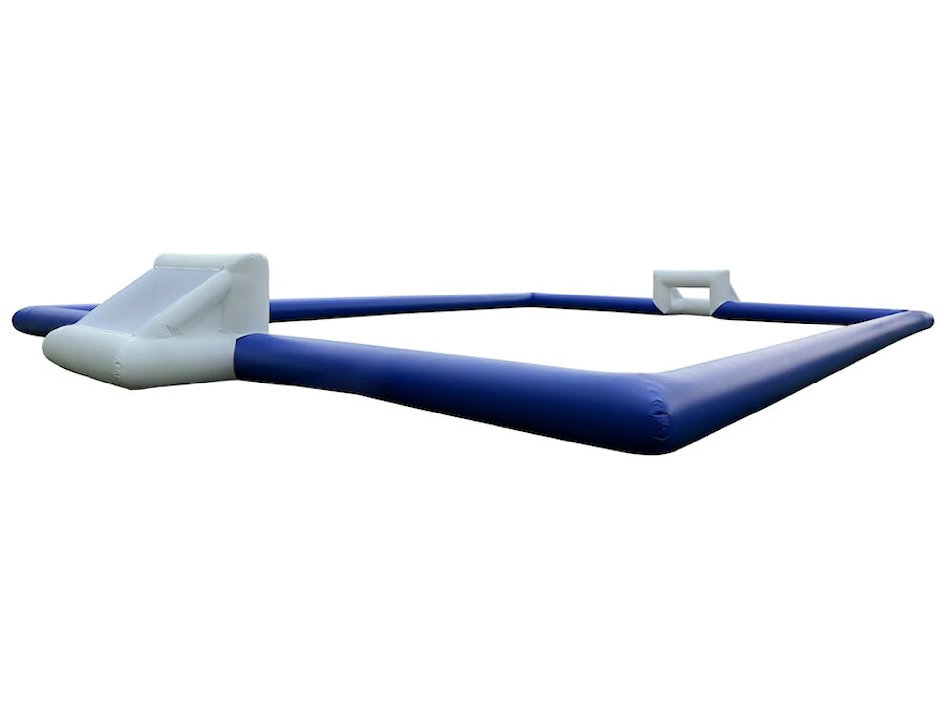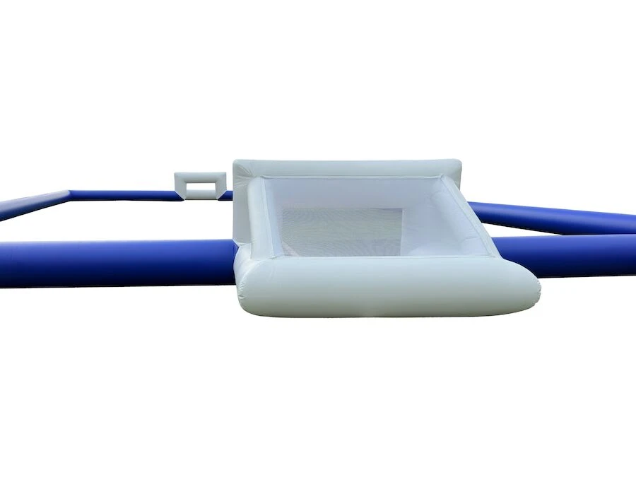 Fodboldbanen kommer som standard med blå bander og hvide mål. Ønskes anden farvekombination og/eller banestørrelse kontakt os og hør nærmere om mulighederne.