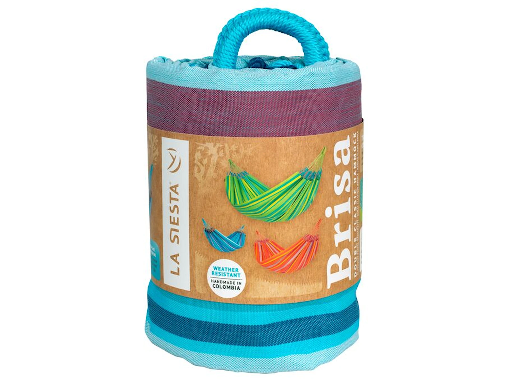 Brisa Hengekøye er håndlaget i Colombia, et land med en sterk tradisjon for hengekøyer og fargerike design som gjenspeiler landets mangfold og glede. Hengekøyen er laget av robuste, lettstelte funksjonsfiber som gjør den spesielt egnet til utendørs bruk. Det stabile opphenget med 84 snorer sørger for jevn vektfordeling og god støtte til ryggen, mens de tettvevde kantene øker slitestyrken og gir lang levetid.