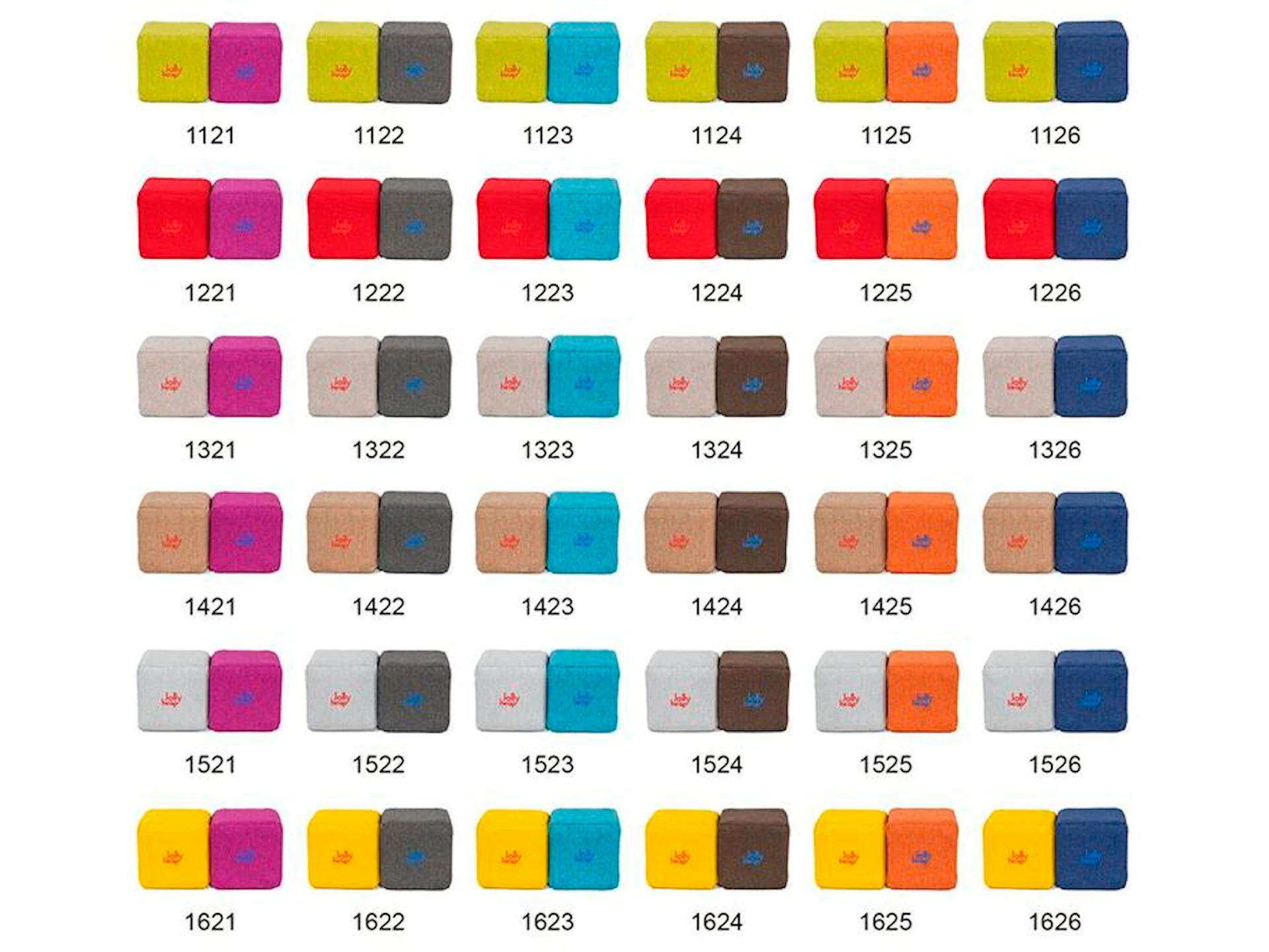 JollyHeap Medium-settet finnes i 36 ulike fargekombinasjoner. Velg mellom fem utvalgte fargekombinasjoner eller ta kontakt med oss for å høre om de andre alternativene.