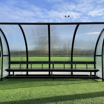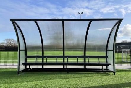 Nye innbytterbenker i resirkulert plast, på nyetablert kunstgressbane