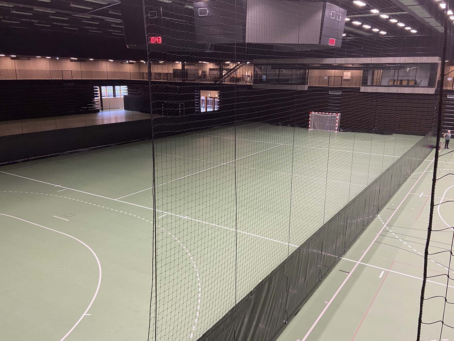 Det var et stort ønske fra kunden at salene raskt og enkelt skulle kunne deles opp, slik at flere aktiviteter kunne foregå i hallen samtidig. For eksempel kan en av hallene deles inn i tre håndballbaner, som kan brukes til både trening og turnering.