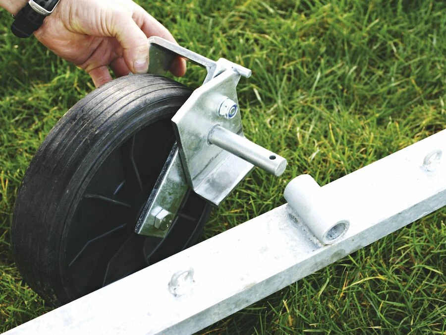 Transporthjul til fotballmål med beslag