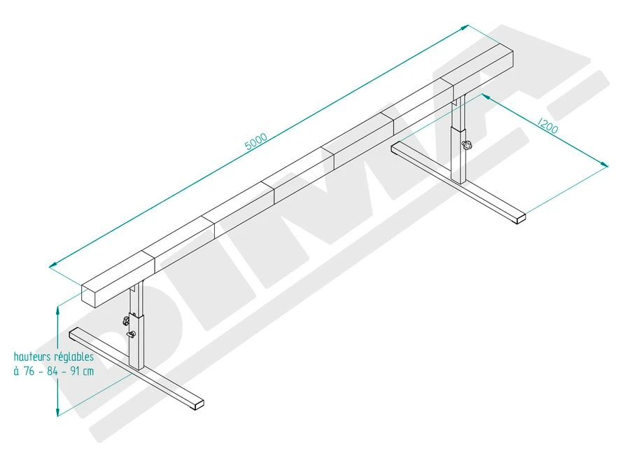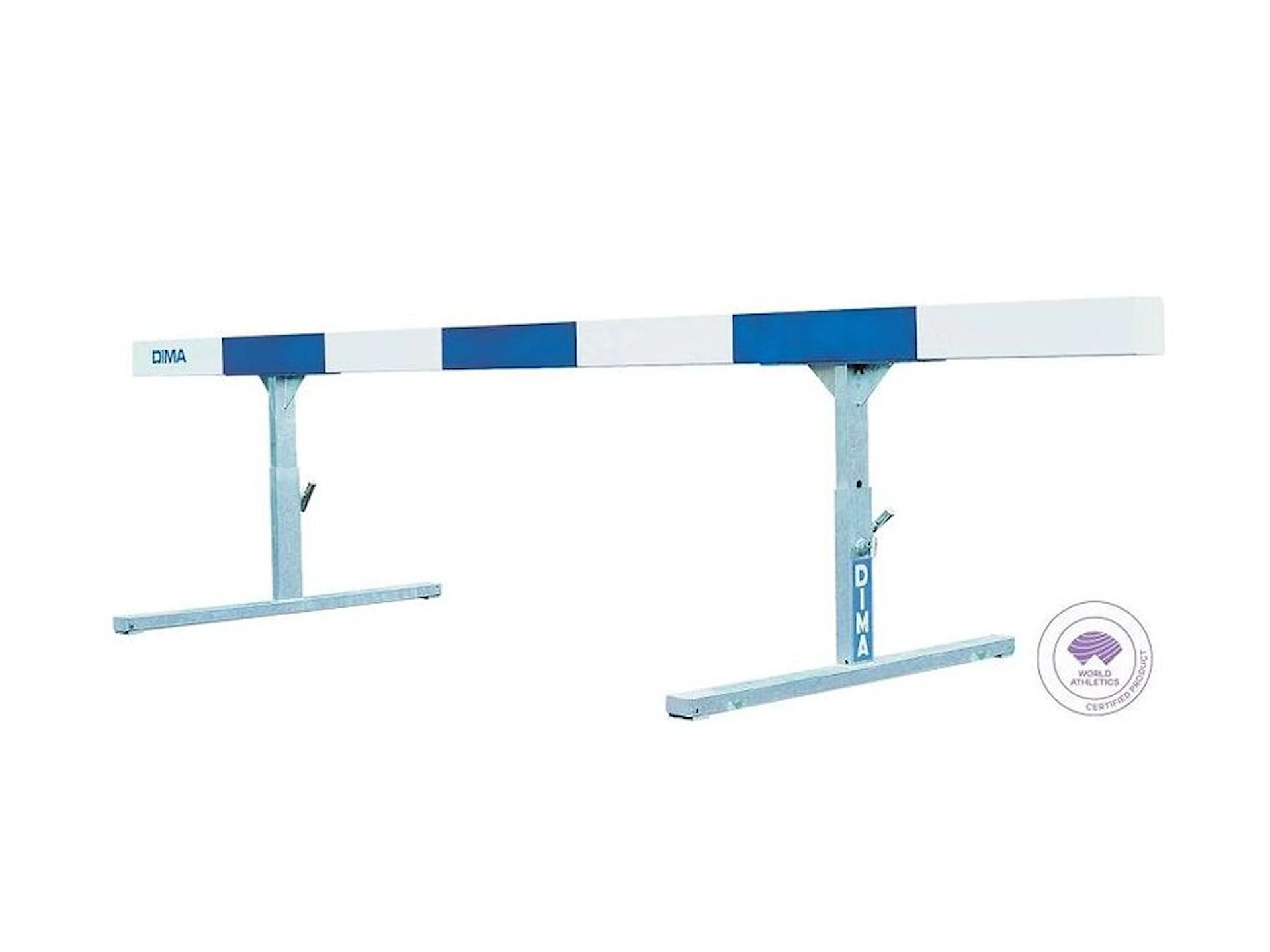 Höjden kan justeras mellan 76, 84 och 91 cm via ett dubbelt spännsystem som garanterar exakt och säker justering. De integrerade hjulen gör det enkelt att flytta hindret på banan.
