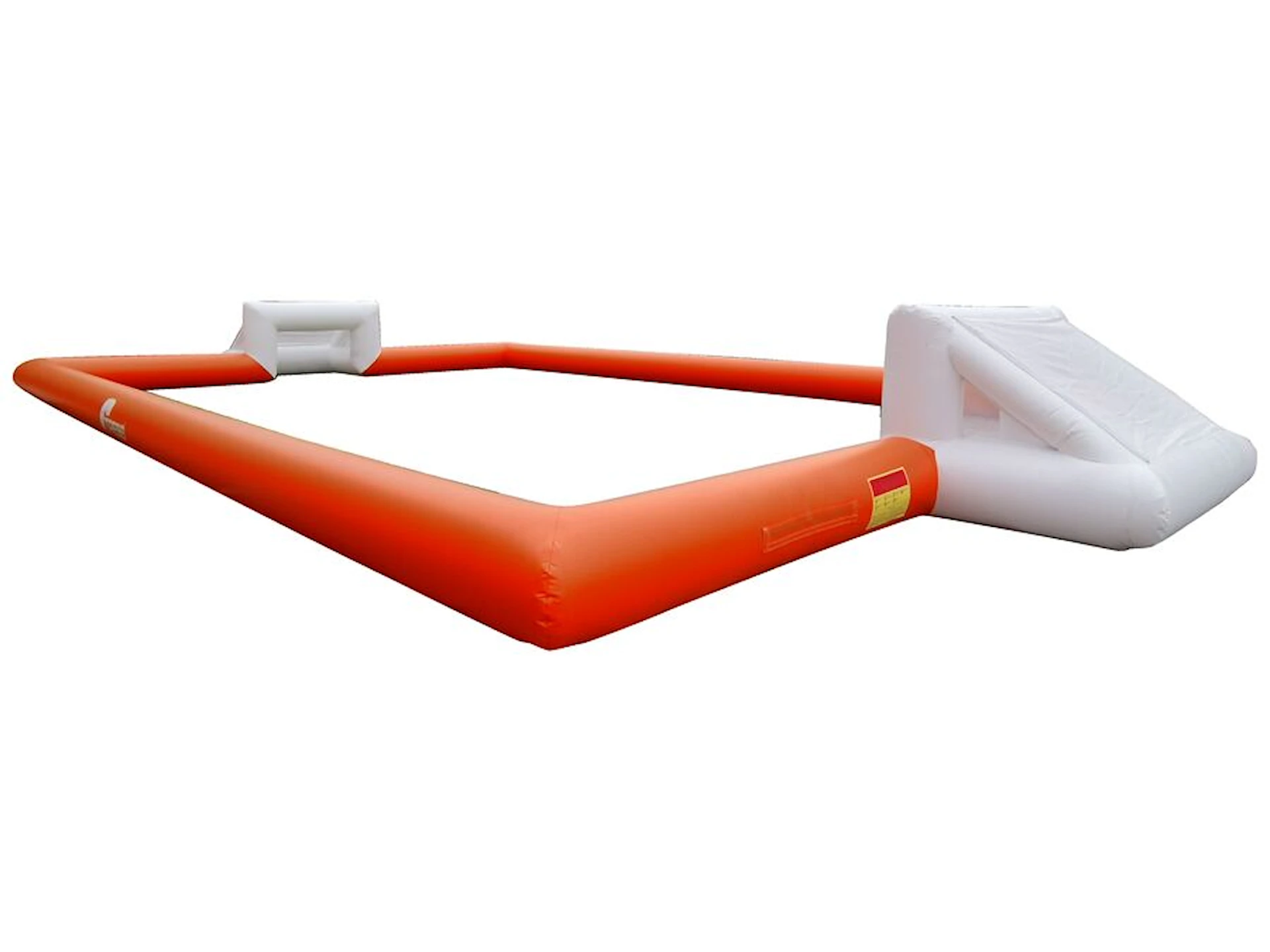 Fotbollsplanen levereras med orange sarg och vita mål som standard. Vill du ha en annan färgkombination och/eller storlek, kontakta oss så berättar vi mer om alternativen.