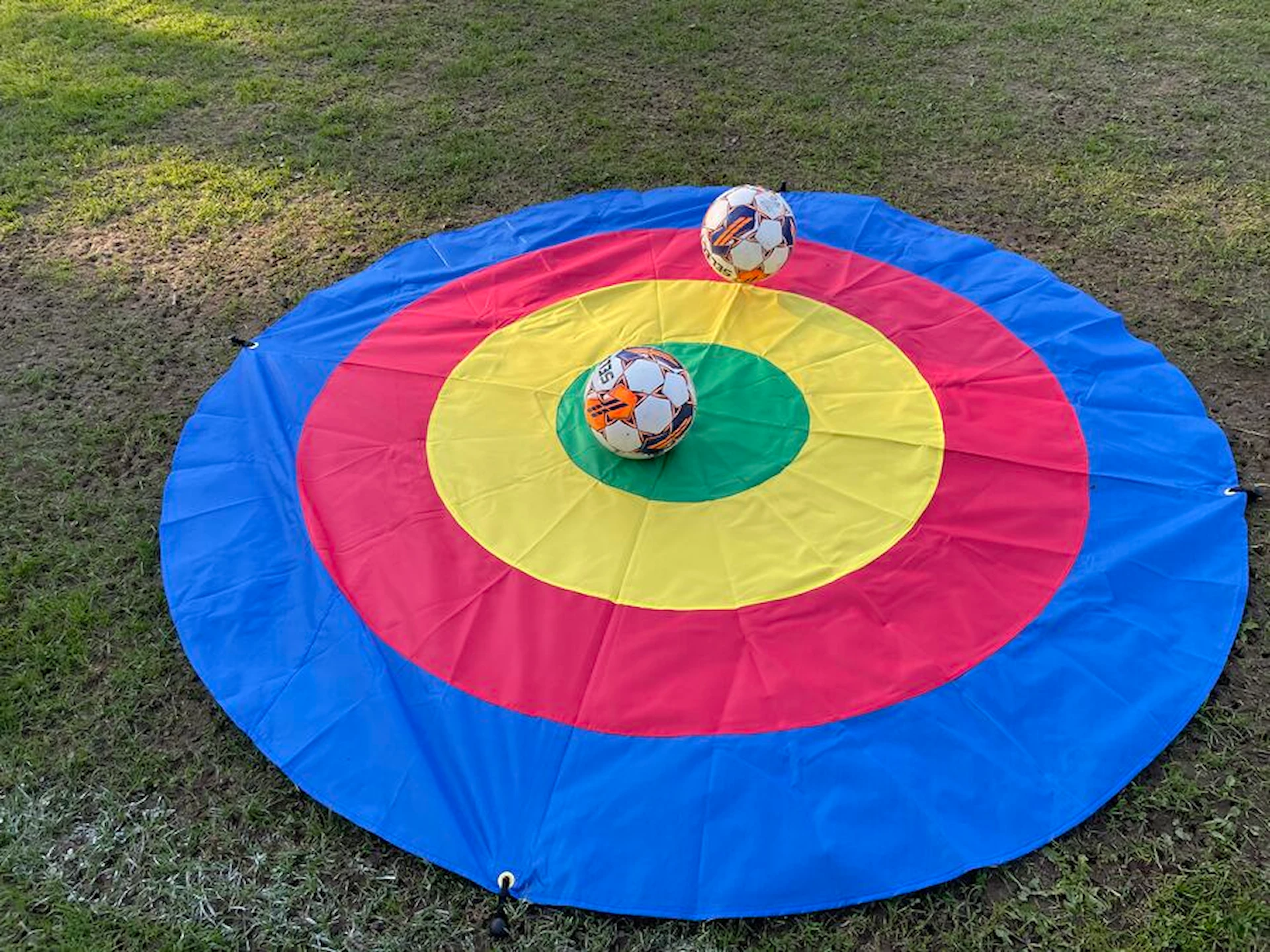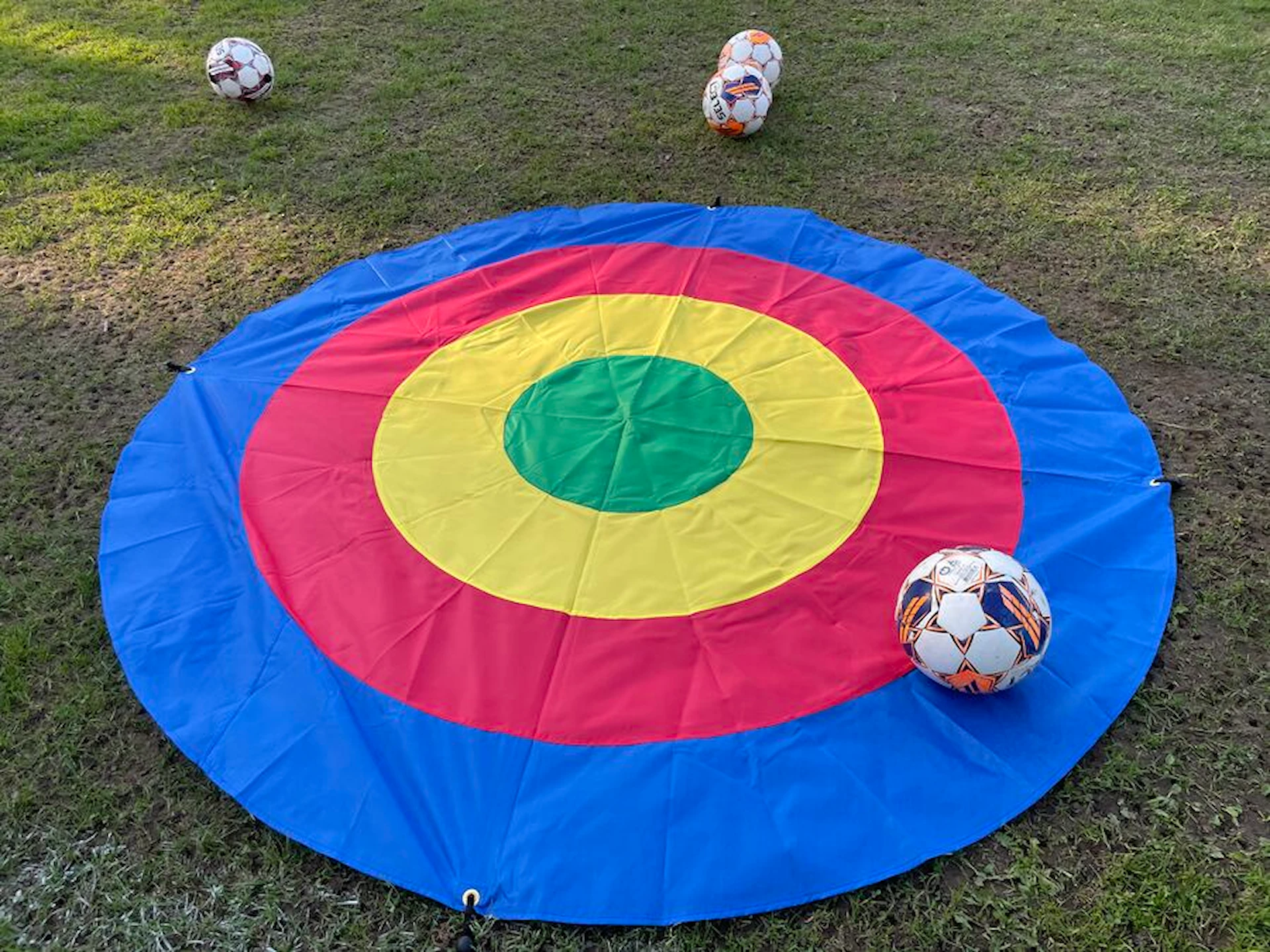 Måltavlan har tydligt markerade zoner, vilket gör spelet lätt att förstå, och den är robust nog för både utomhus- och inomhusbruk. De fyra jordankarna säkerställer stabilitet under utomhusaktiviteter.