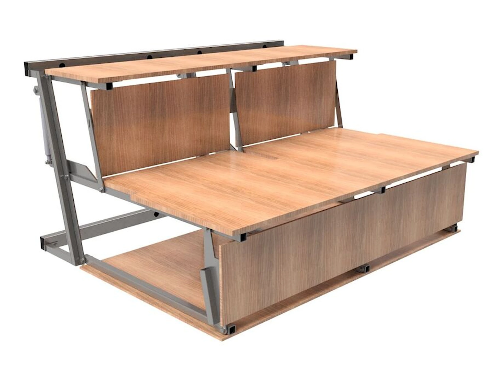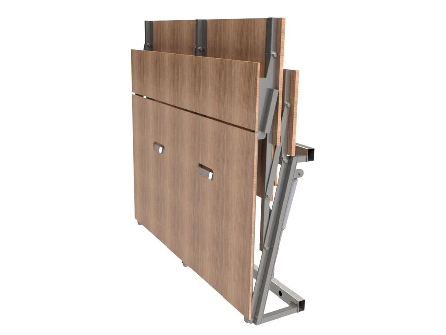 Den fällbara läktaren är perfekt för sportevenemang, skolframträdanden och andra inomhusaktiviteter där flexibla sittplatser behövs. Med en belastningskapacitet enligt EN 1991-1-1 kat. C5 - 5,0 kN/m² kan du vara säker på att våra läktare erbjuder en pålitlig och mångsidig lösning som ger en bekväm upplevelse för alla åskådare.