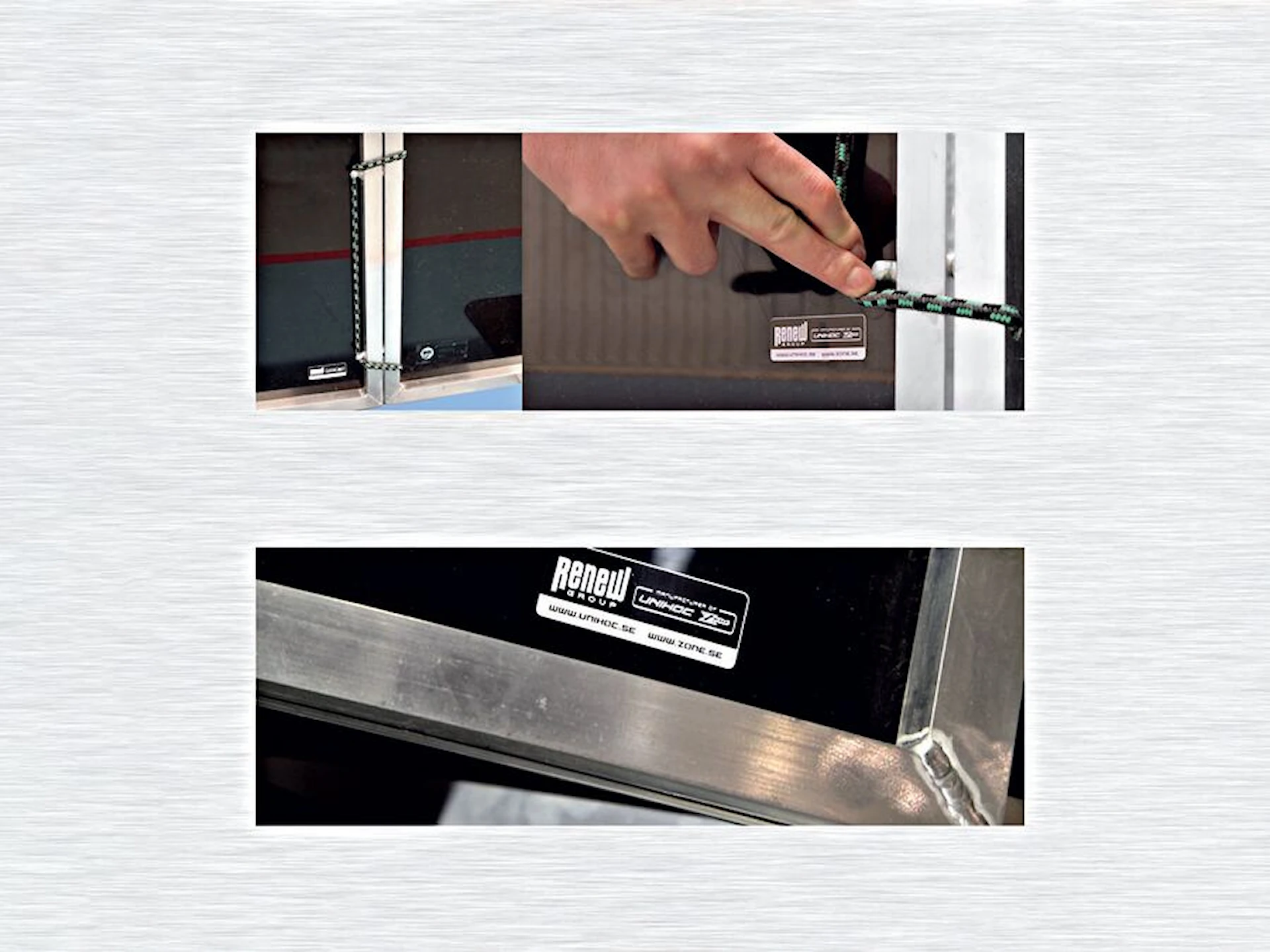 • Den blanka ytan gör det enkelt att applicera sargreklam på både in- och utsidan. Hörnbitarna levereras med UNIHOC-logga som standard.