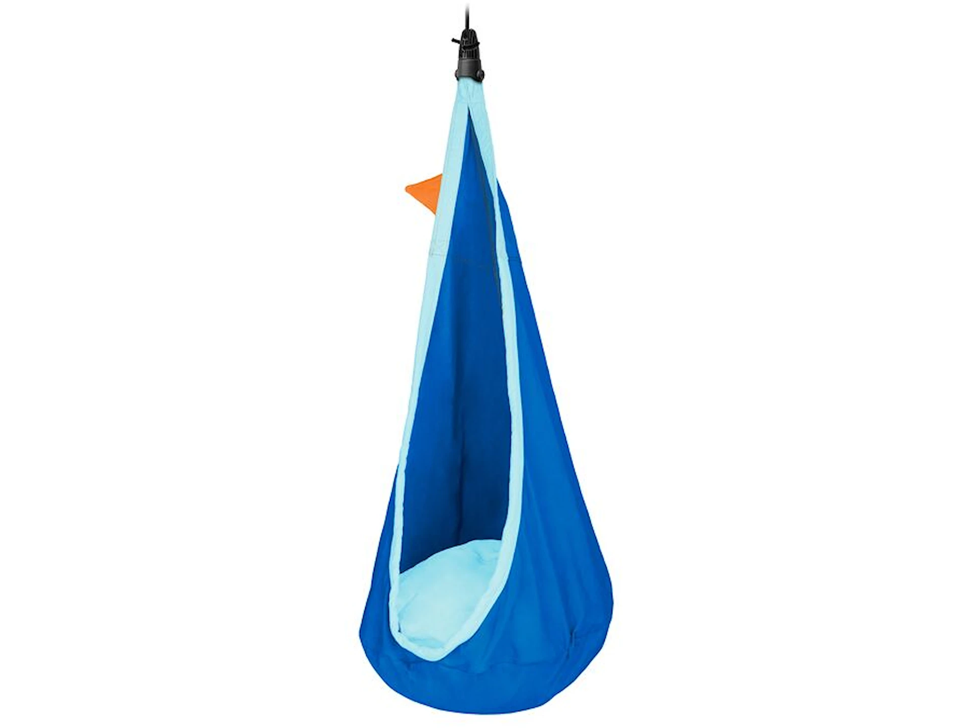 Upphängningslösningen är mycket smart och gör det enkelt att hänga upp och ta ner kojan, samt att justera höjden över golvet. Med en säkerhetssvivel undviker du att hängkojan snurrar ihop när barnen snurrar runt. Lösningen är testad enligt TÜV och uppfyller de högsta säkerhetsstandarderna.