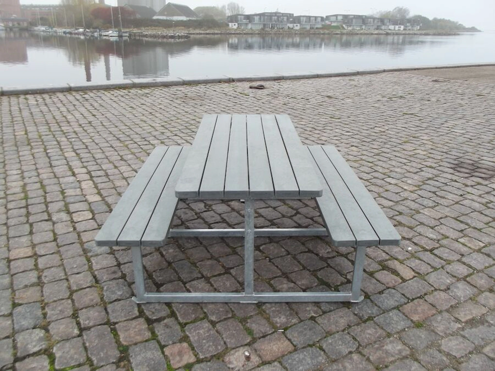 Underredet av varmförzinkat stål i fyrkantsprofil är förberett för montering i underlaget. Dansktillverkade kvalitetsmöbler till utemiljön.