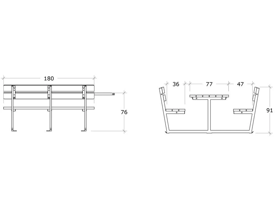 Bänkbordet levereras förberett för förankring i färgerna grå, brun eller svart, där grå är standard. Dansktillverkade kvalitetsmöbler till utemiljön.