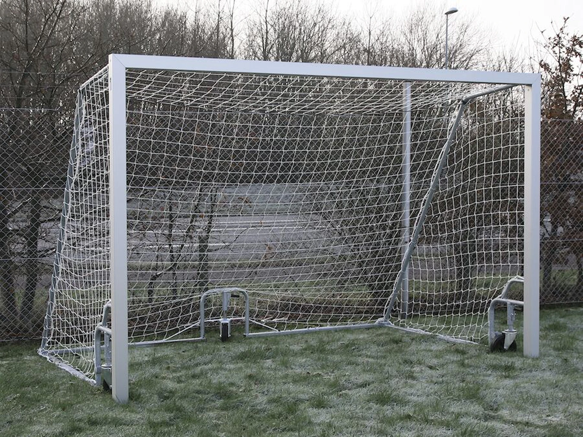 Detta ROBO Smartlift fotbollsmål för 5 mot 5-spel har en fyrkantig målram av pulverlackerad aluminium, är svetsat i hörnen och har dessutom förstärkta hörnvinklar invändigt. Nätkrokar, släpskor och bakliggare är tillverkat av varmförzinkat stål, så målet är optimalt rostskyddat och passar vårt skandinaviska väder. Målet levereras med frostsäkra nätkrokar av nylon, och monteringsbultar av rostfritt stål.