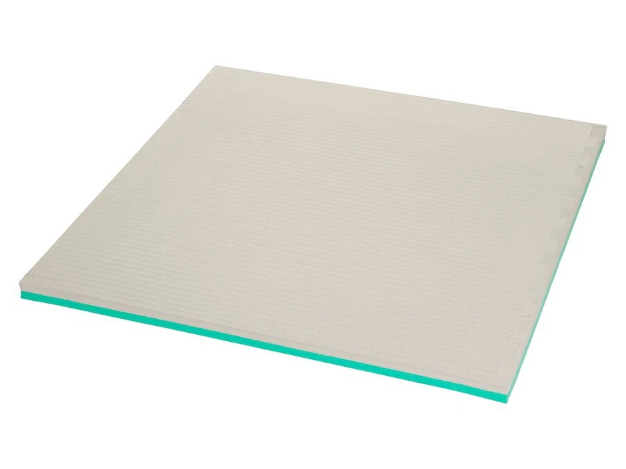 Med taggiga kanter som en pusselbit är det enkelt att montera ihop flera mattor för att täcka ett större område. Fogarna är täta och kan avslutas med de medföljande kanterna för en snygg finish. Med kantfinish mäter mattan 102 x 102 cm. Tjockleken är 40 mm (+/- 2 mm).