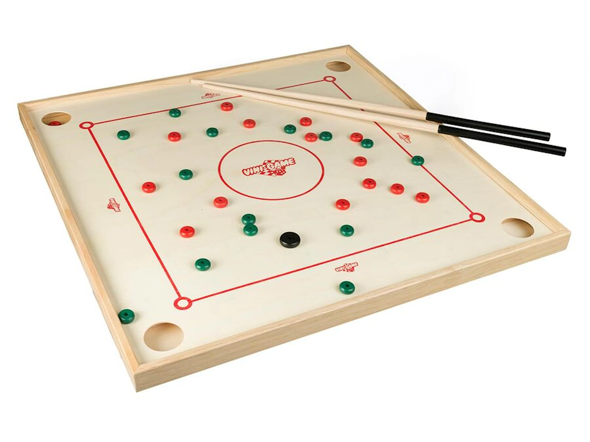 Detta bordsspel är tillverkat i trä och mäter 88 x 88 cm vilket gör det perfekt för inomhusbruk. För bästa spelupplevelse rekommenderas att spelet placeras på ett stativ eller en upphöjd yta, precis som ett biljardbord. Observera att underrede inte ingår.